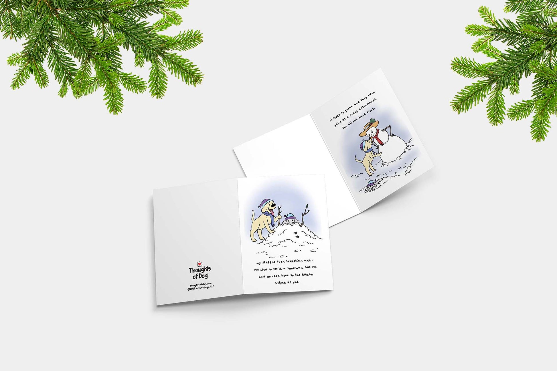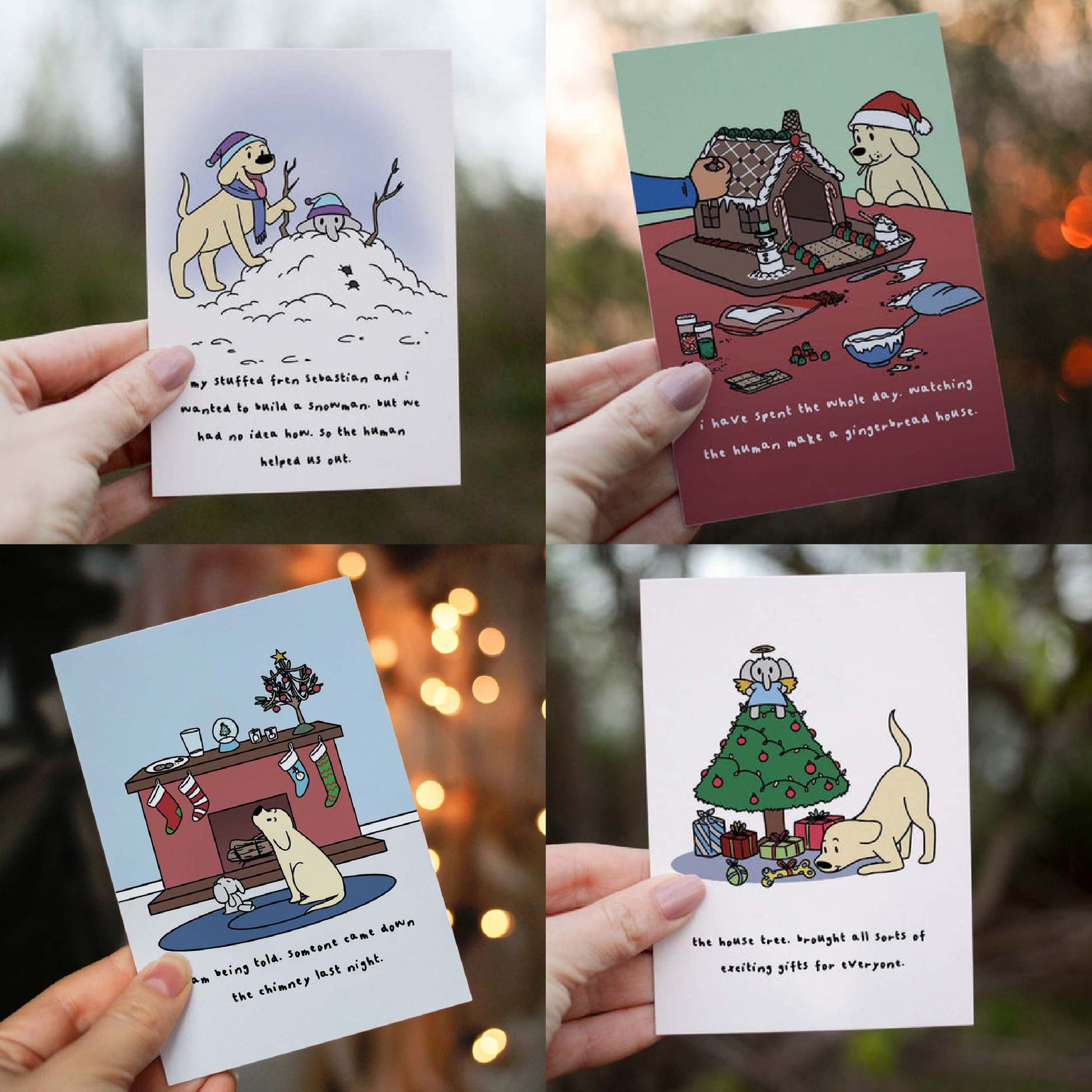 Get 20 of our exclusive Thoughts of Dog Holiday cards and envelopes in time to send to your loved ones for the holidays. Includes five cards of each of our 2021 Holiday cards.