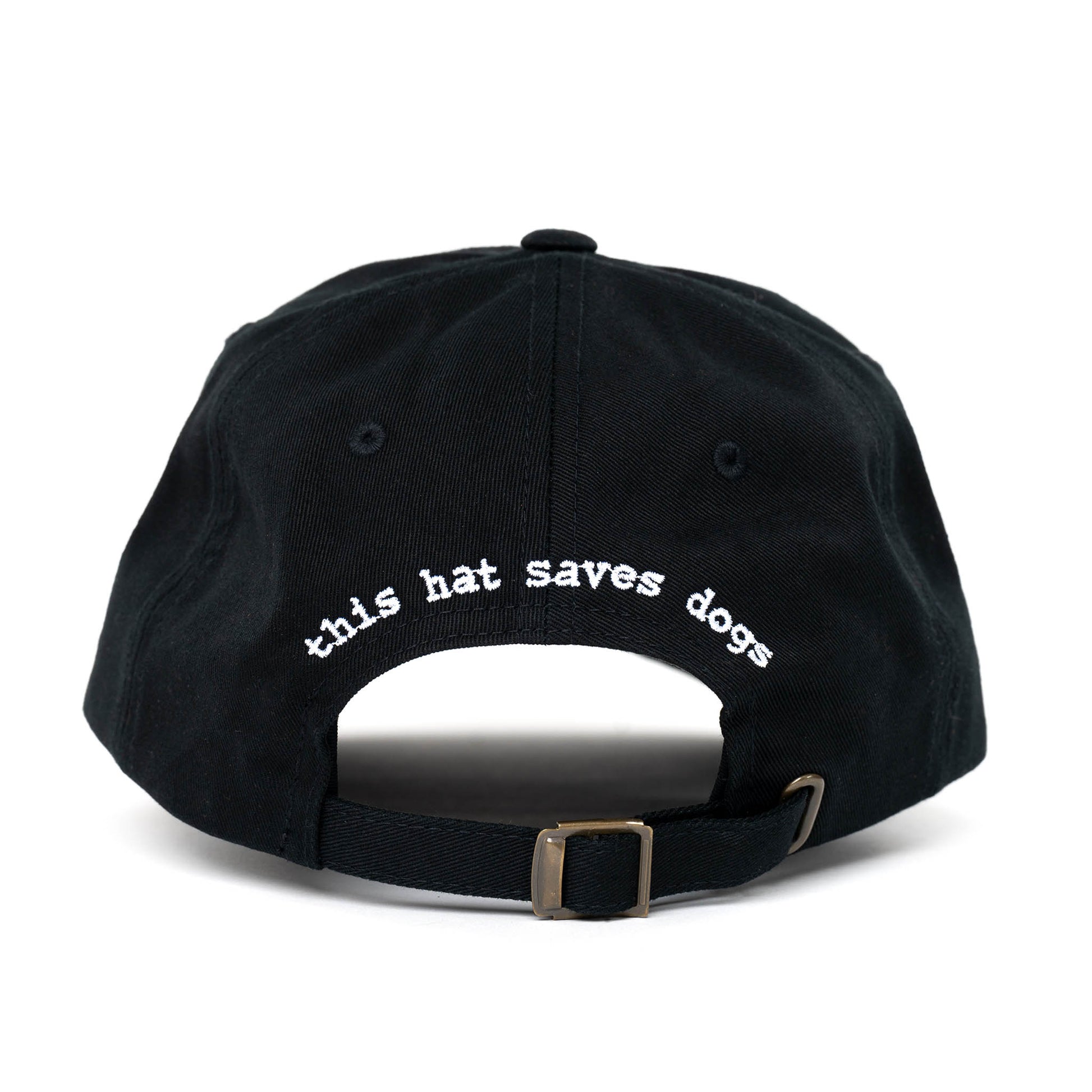 - "this hat saves dogs" embroidered across the back