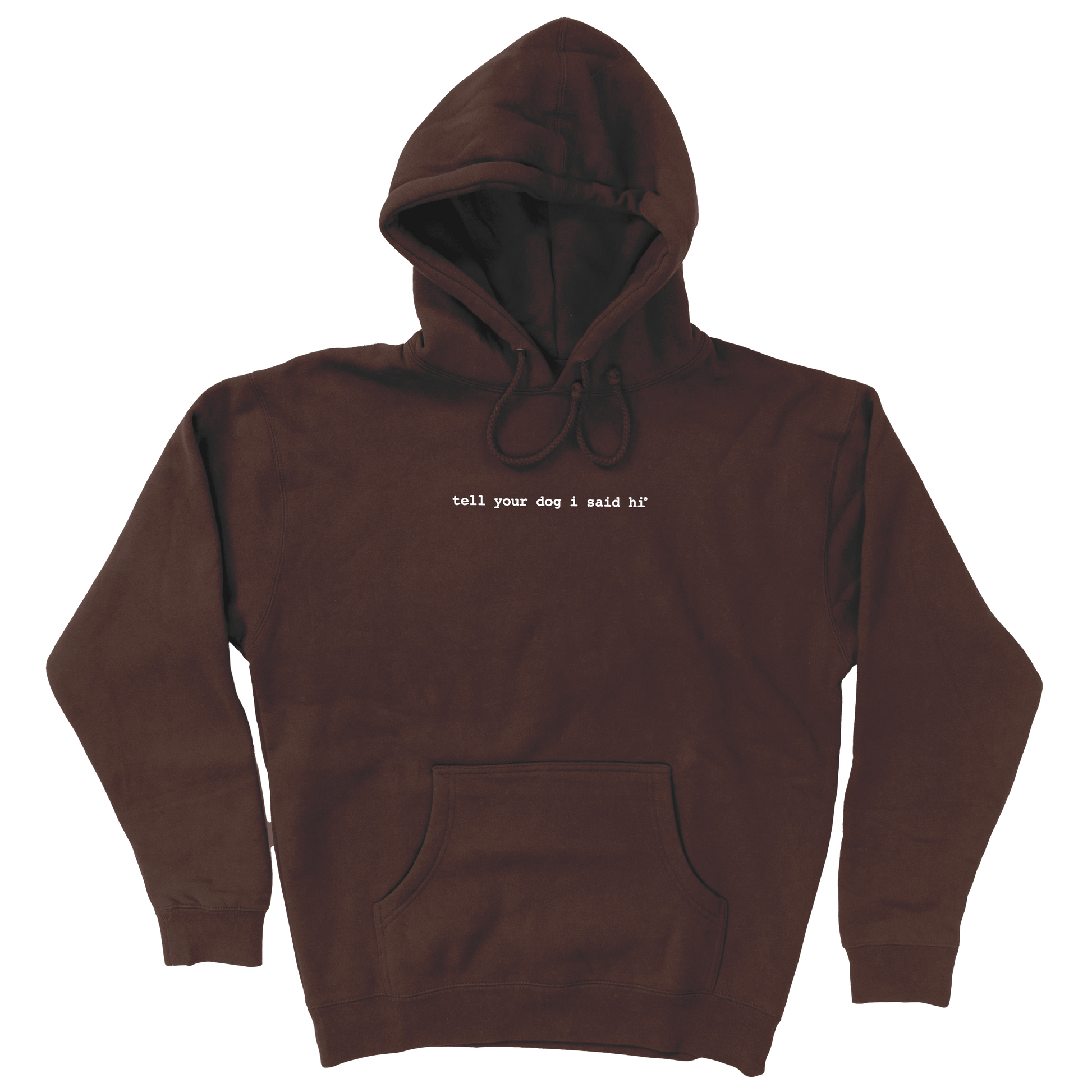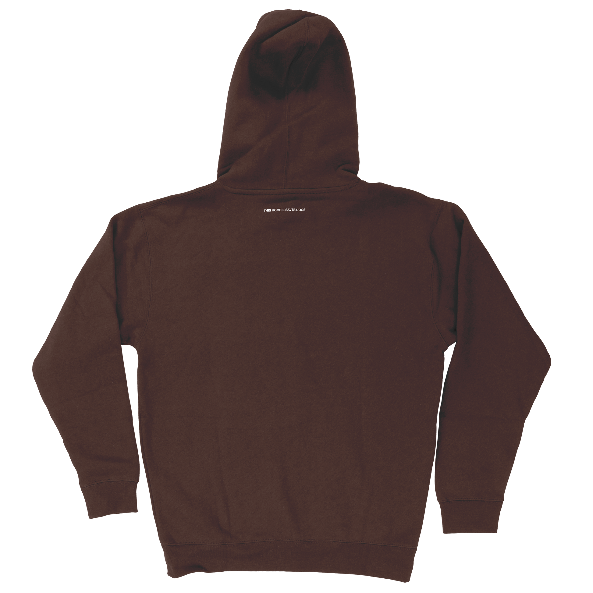 - "THIS HOODIE SAVES DOGS" in small print on the back (under the hood!)