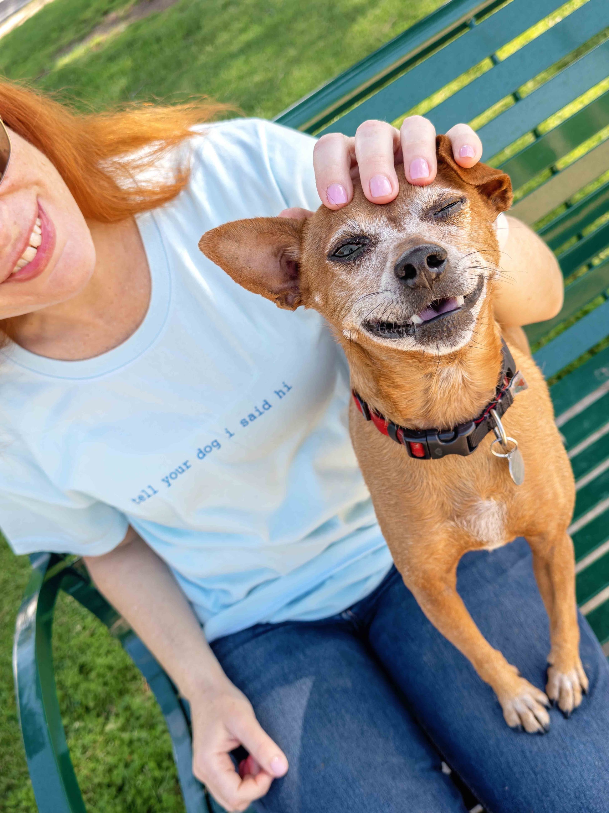 15% of the net proceeds from all Tell Your Dog I Said Hi™ products go to the 15/10 Foundation, which helps sponsor dogs with behavioral or medical issues that would otherwise have difficulty getting out of shelters.