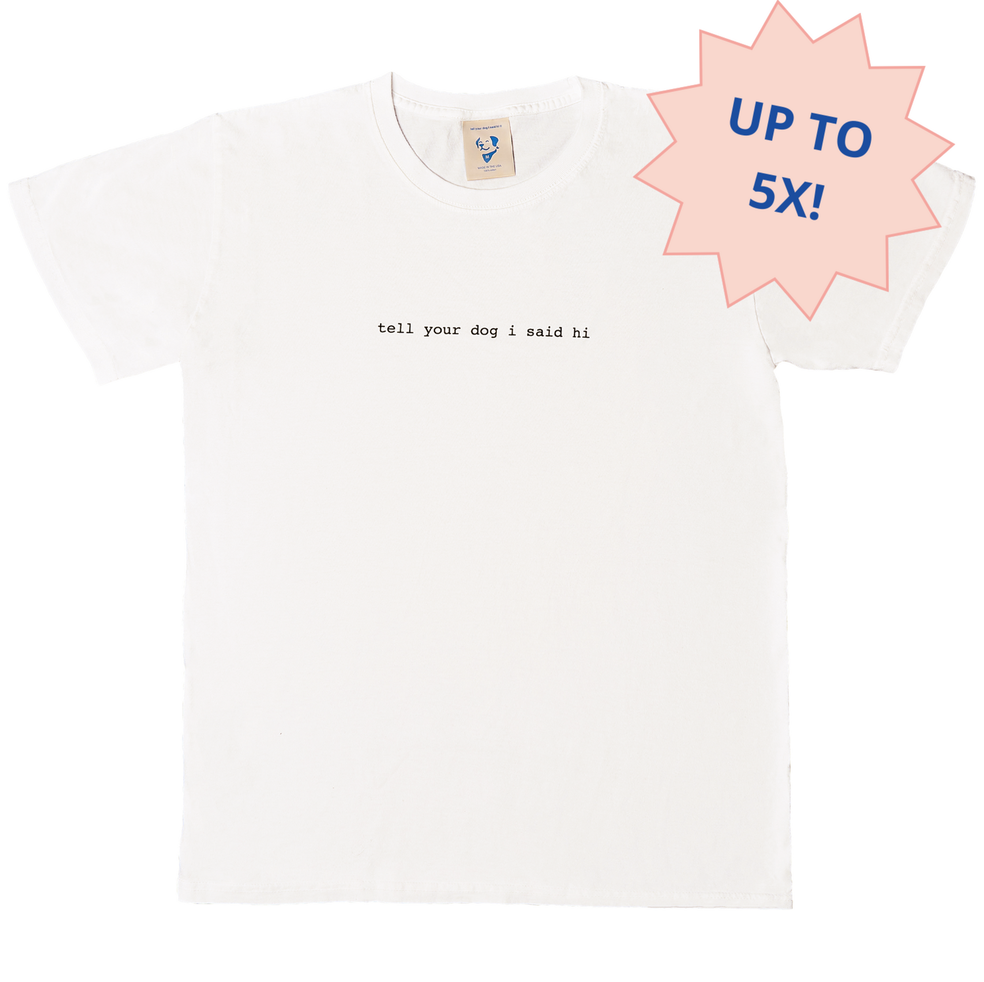 15% of the net proceeds from all Tell Your Dog I Said Hi™ products go to the 15/10 Foundation, which helps sponsor dogs with behavioral or medical issues that would otherwise have difficulty getting out of shelters.