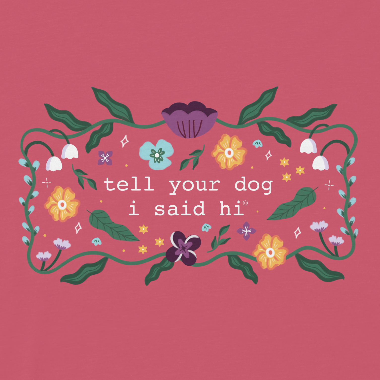 - tell your dog i said hi printed on the front