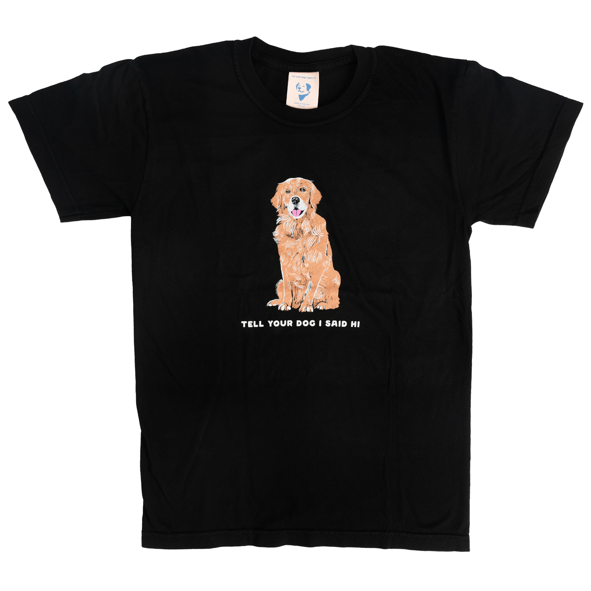 - Tell Your Dog I Said Hi on the front with a Golden dog design