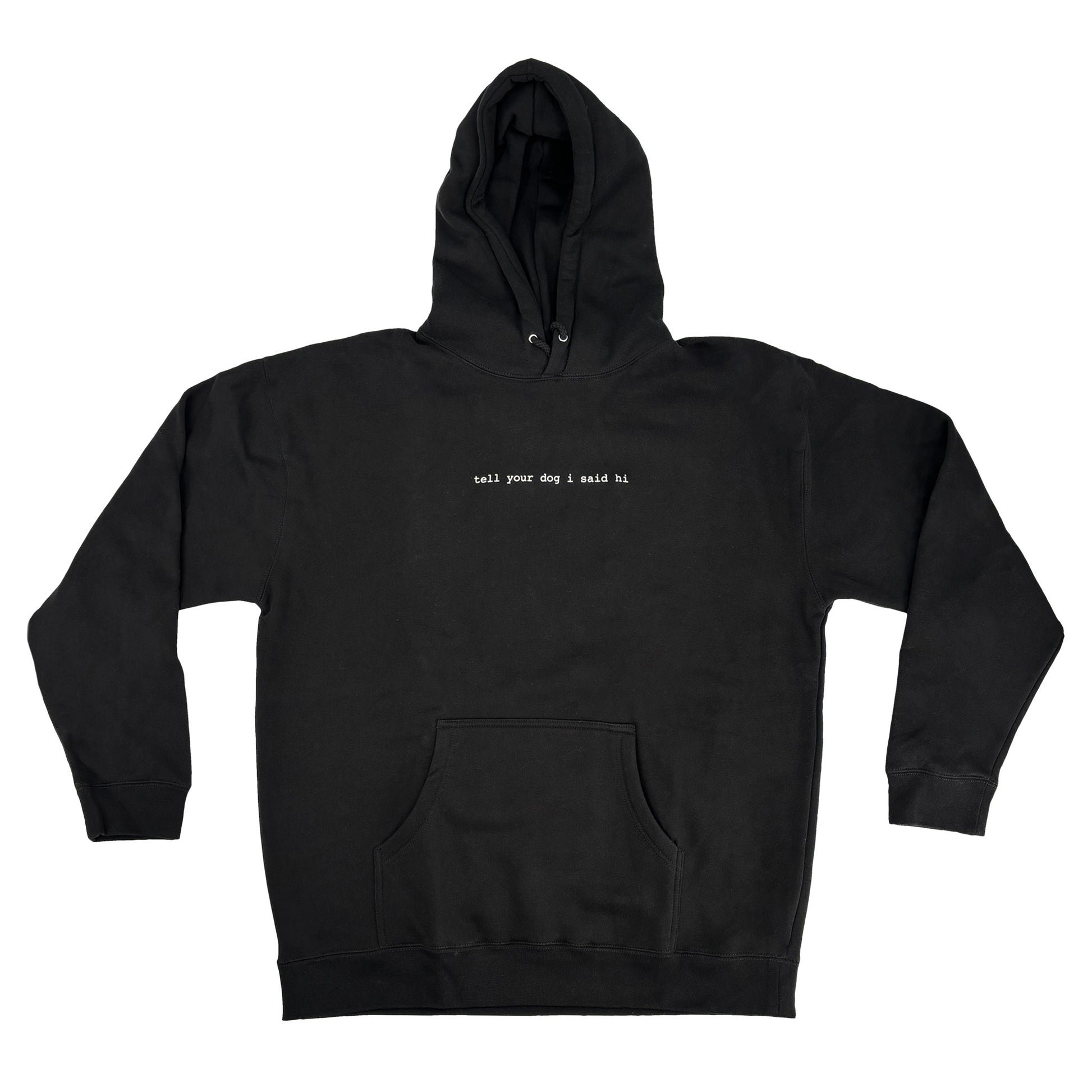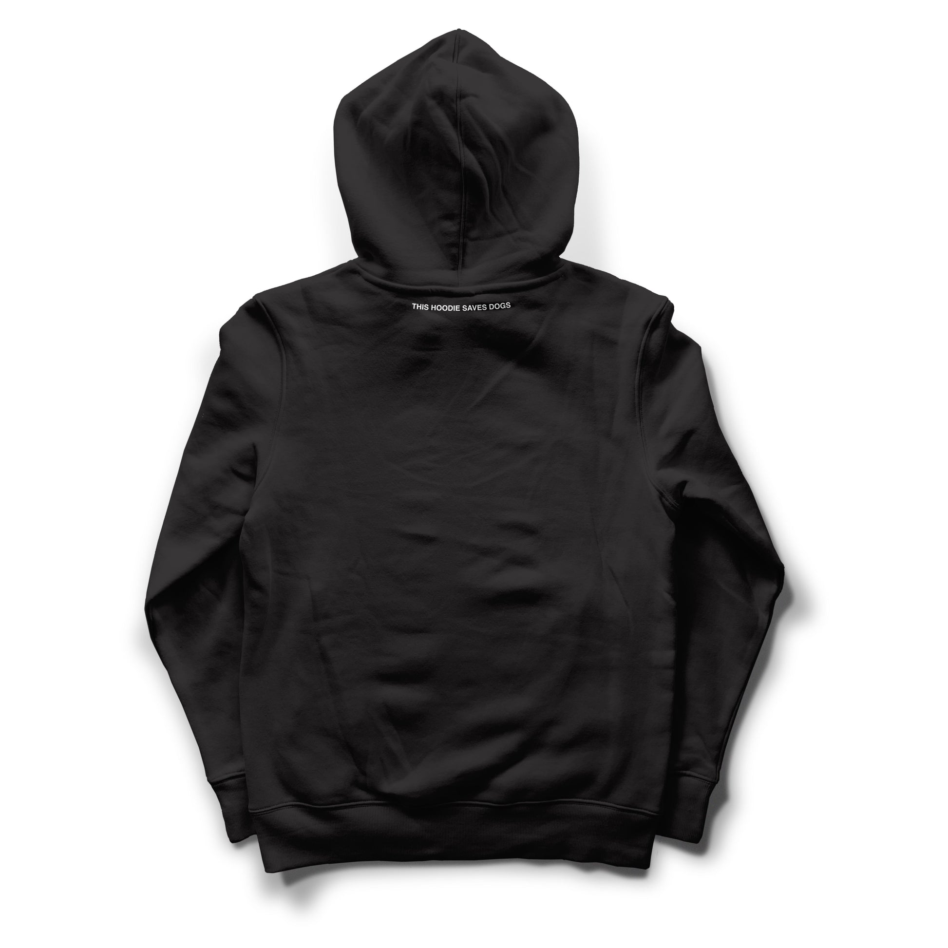 - "THIS HOODIE SAVES DOGS" in small print on the back (under the hood!)