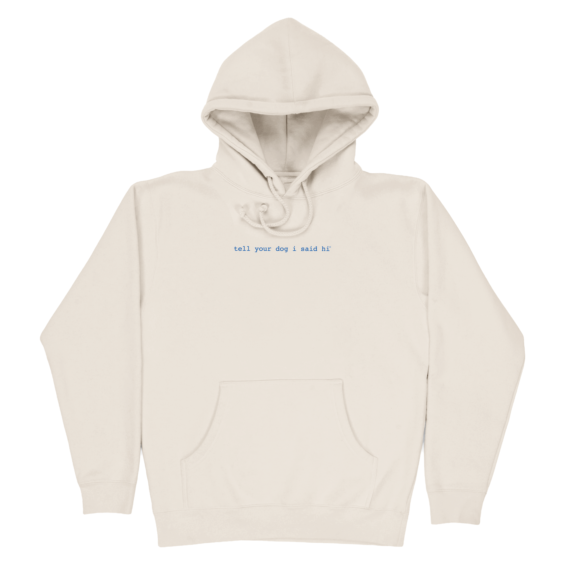 - tell your dog i said hi printed on the front
