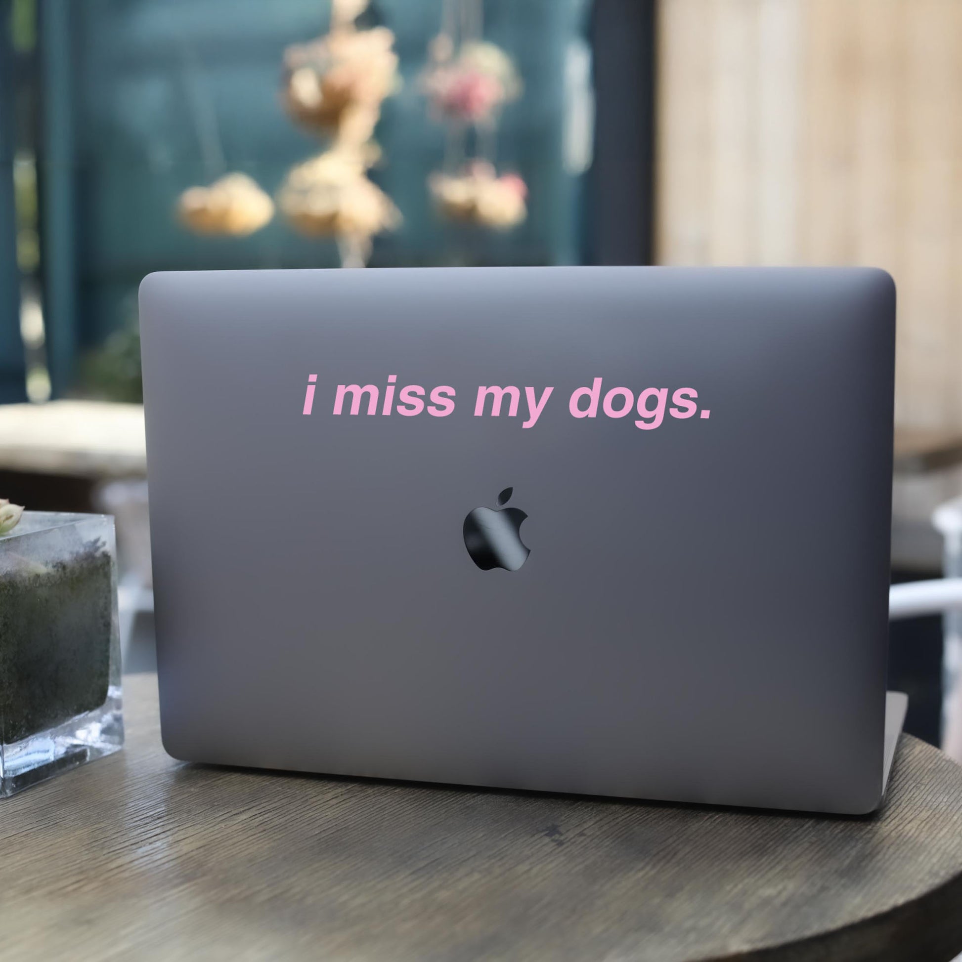 Let everyone who drives by you, and everyone who sees your laptop know, you miss your dogs… without having to talk to them. Perfect for cars, laptops, binders, and more.