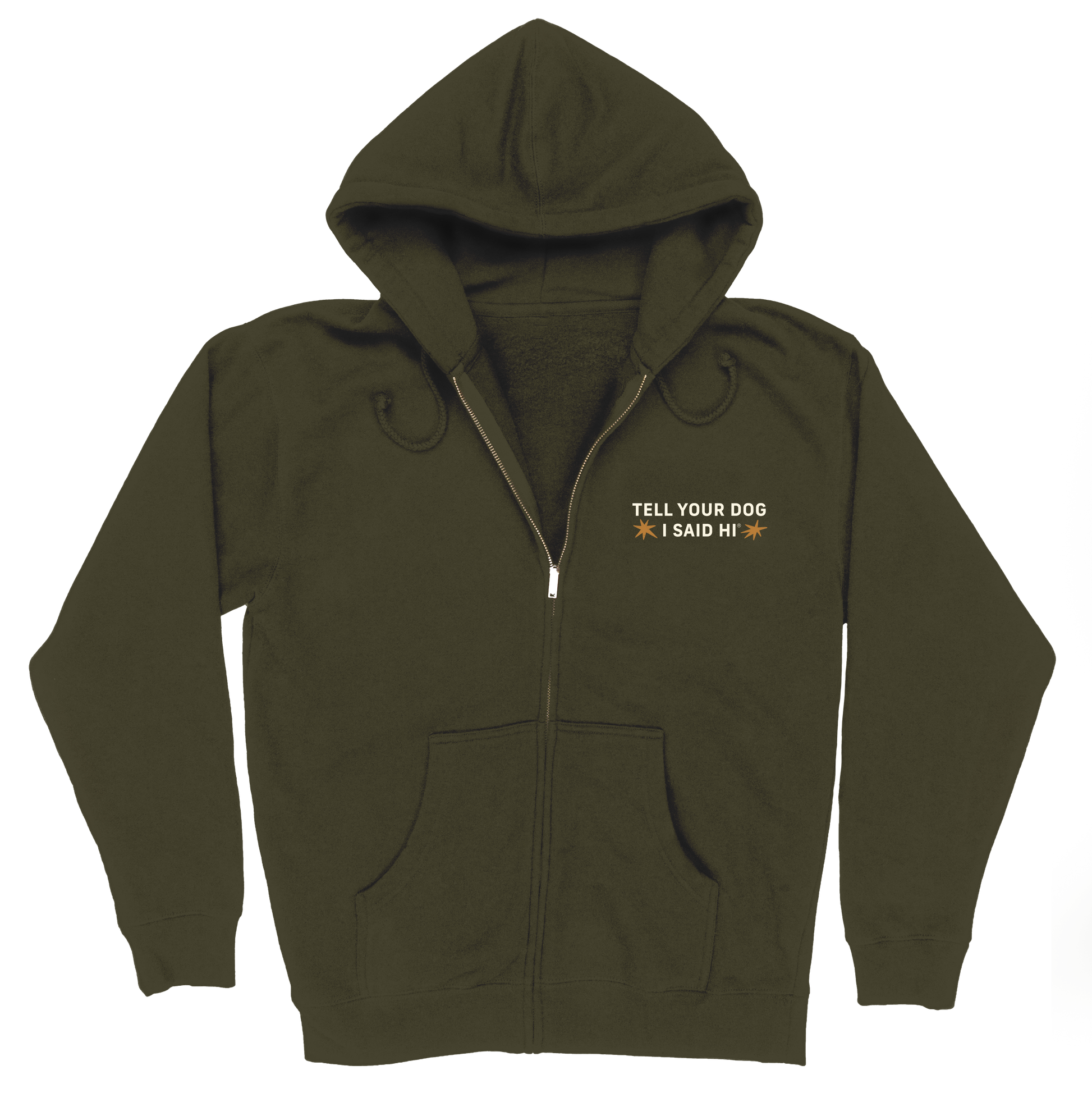 - "THIS HOODIE SAVES DOGS" in small print on the back (under the hood!)