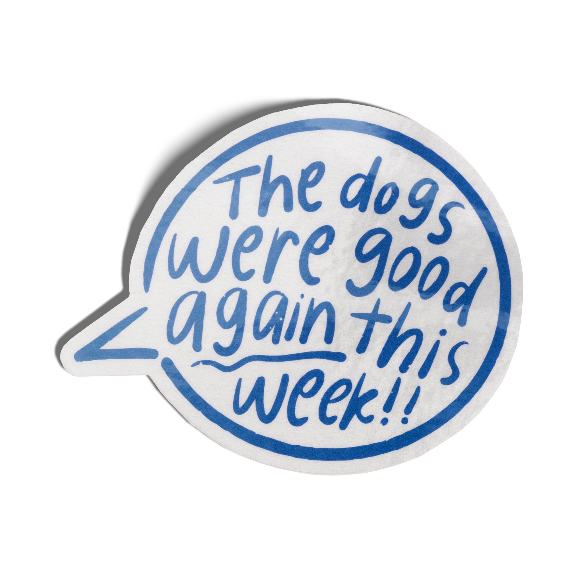 "The Dogs Were Good Again This Week" Talk Bubble Sticker in blue and white.