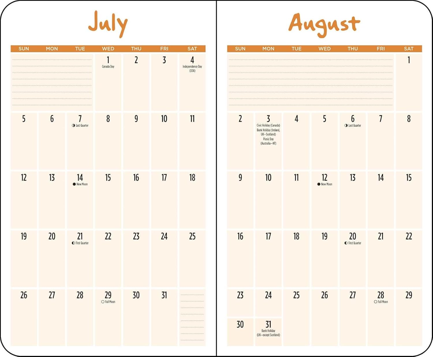 - Weekly spreads have space for 7 days, plus notes, checklists, and months-at-a-glance reference