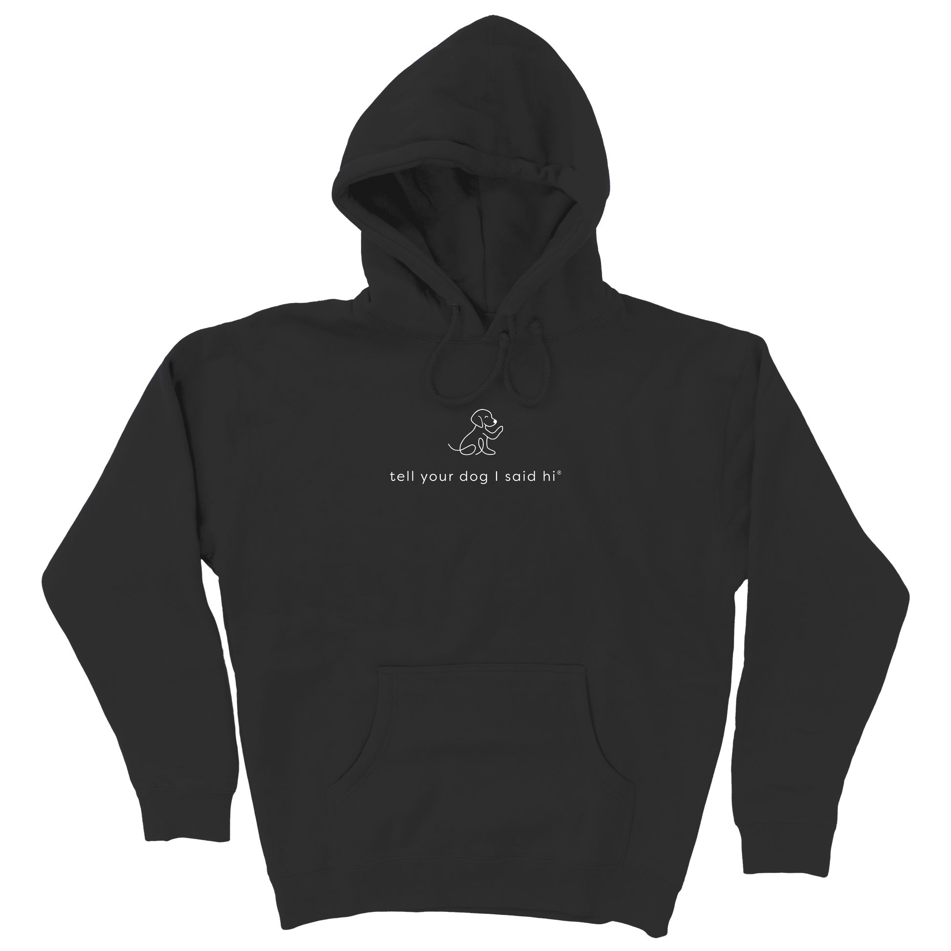 - "THIS HOODIE SAVES DOGS" in small print on the back (under the hood!)
